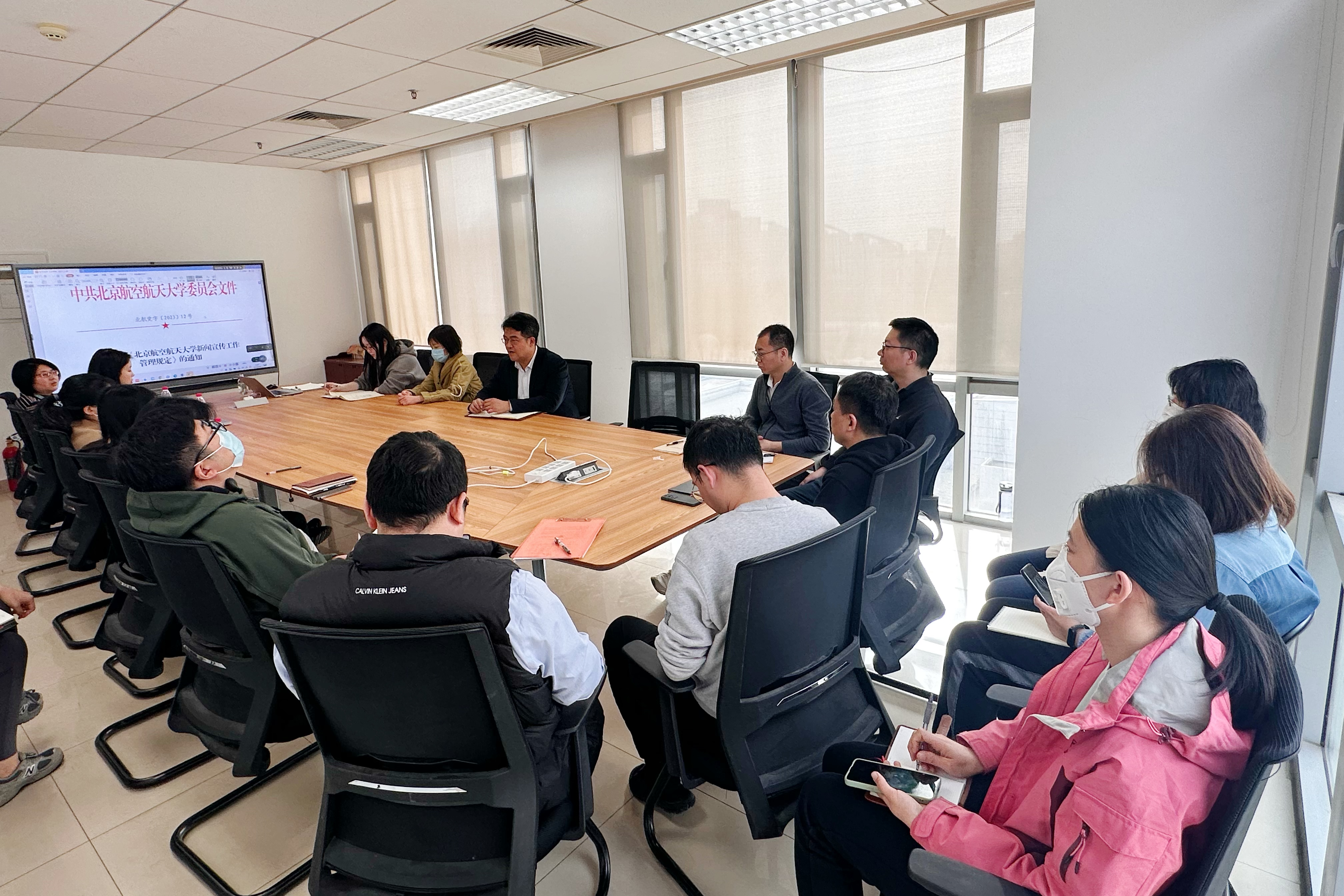 随后,学院宣传工作联络人郝旭春对学院宣传工作实施方案进行了解读。在工作范畴、平台建设、人员分工、发文流程和规范等方面,进一步明确了学院新闻宣传工作的管理制度,具体说明了宣传工作的开展方式。参会教师踊跃发言,对信息员的工作职责、培训机制、网站建设等方面提出了建设性的意见和建议。
