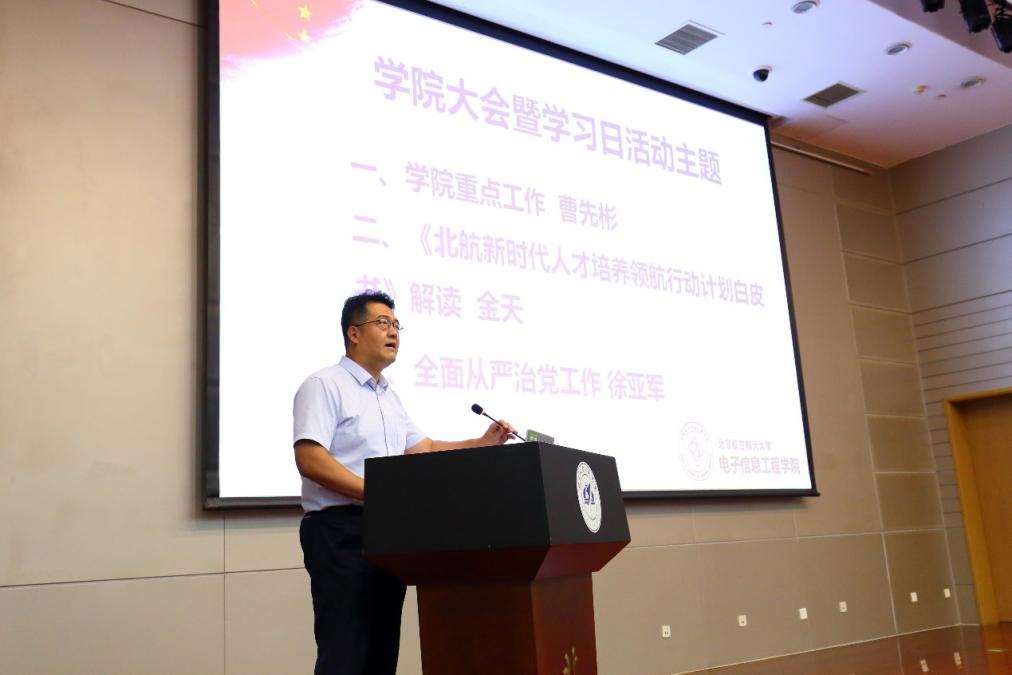 党委书记徐亚军传达学校2022年暑期工作会精神,梳理回顾了学院上半年全面从严治党工作取得的进展与成效。他指出,全院上下应当团结一心、统一思想、凝聚共识,共同努力开创学院内涵、特色、高质量发展的新局面,高水平推进“双一流”建设,以实际行动迎接党的二十大胜利召开、迎接北航七十周年校庆。