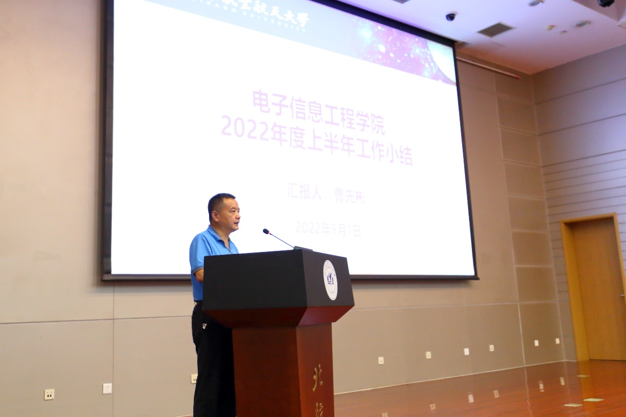 院长曹先彬总结了学院2022年上半年学科发展、人才培养、科学研究、科研工作和行政服务等工作情况,对下半年重点工作进行部署。他强调,2022年是深入落实学校新时代高质量人才培养领航行动计划关键之年,学院要系统谋划和扎实推进新时代高质量人才培养体系建设,以优异成绩迎接党的二十大召开和学校七十周年校庆。