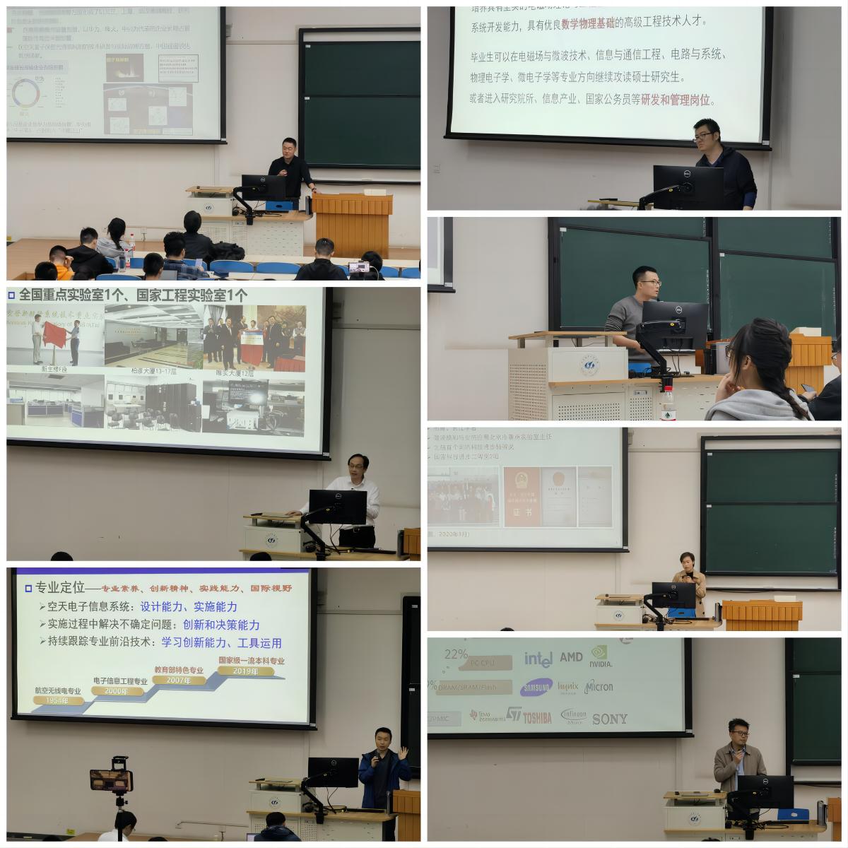 4月12日下午与14日晚上,来自通信工程、光电信息科学与工程、电子信息工程、交通运输(民航信息工程)、电子科学与技术、集成电路设计与集成系统、电磁场与无线技术等全部7个专业的教师代表分别讲解了专业的基本情况、科研方向与就业情况,让同学们明确了专业选择方向。