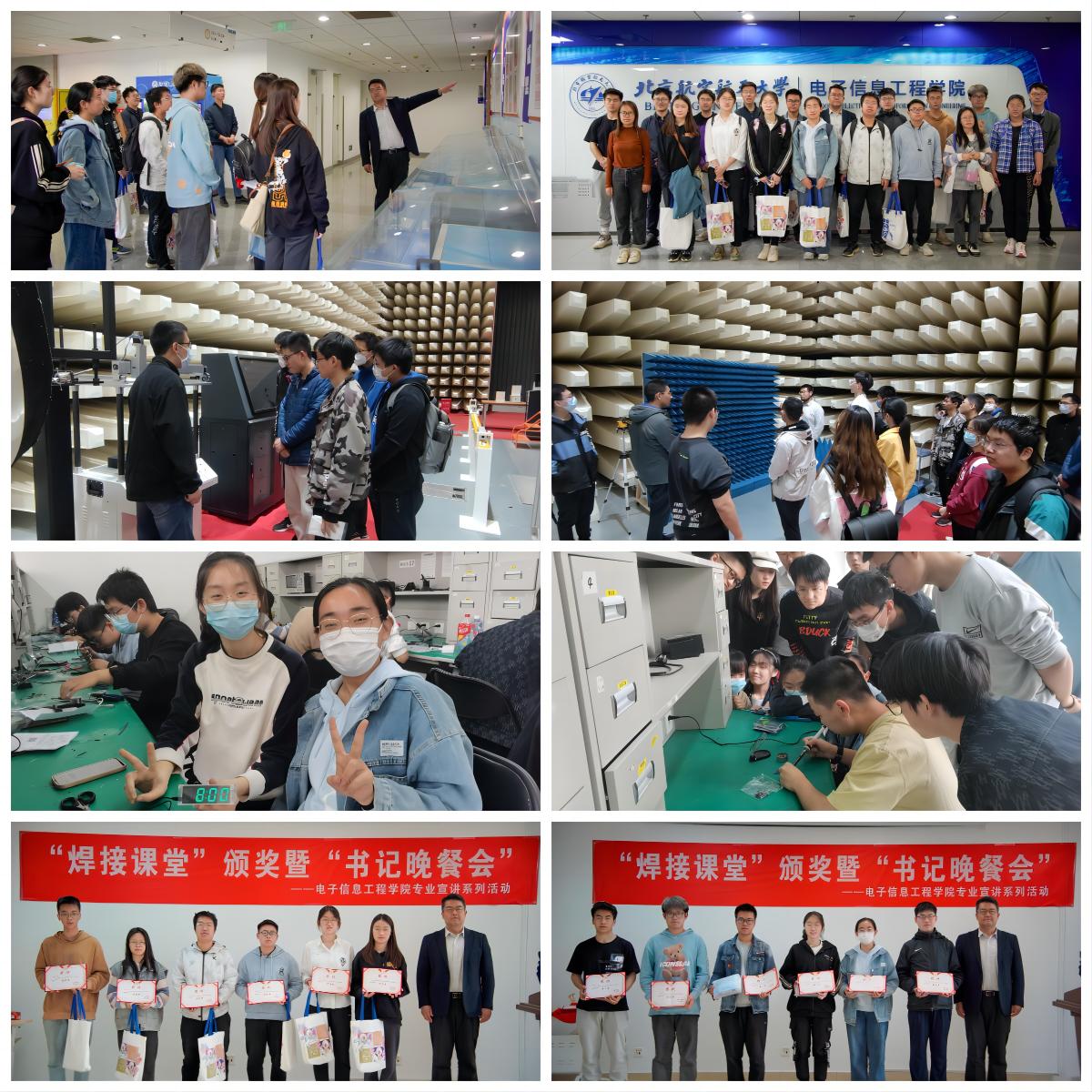 此外,学院还组织了学院展览参观、电磁兼容实验室参观、焊接课堂等多个活动。同学们通过亲身体验参观,领略了前沿科技与学院的科研成果;通过动手焊接实操,对专业特色有了更直接的感受。