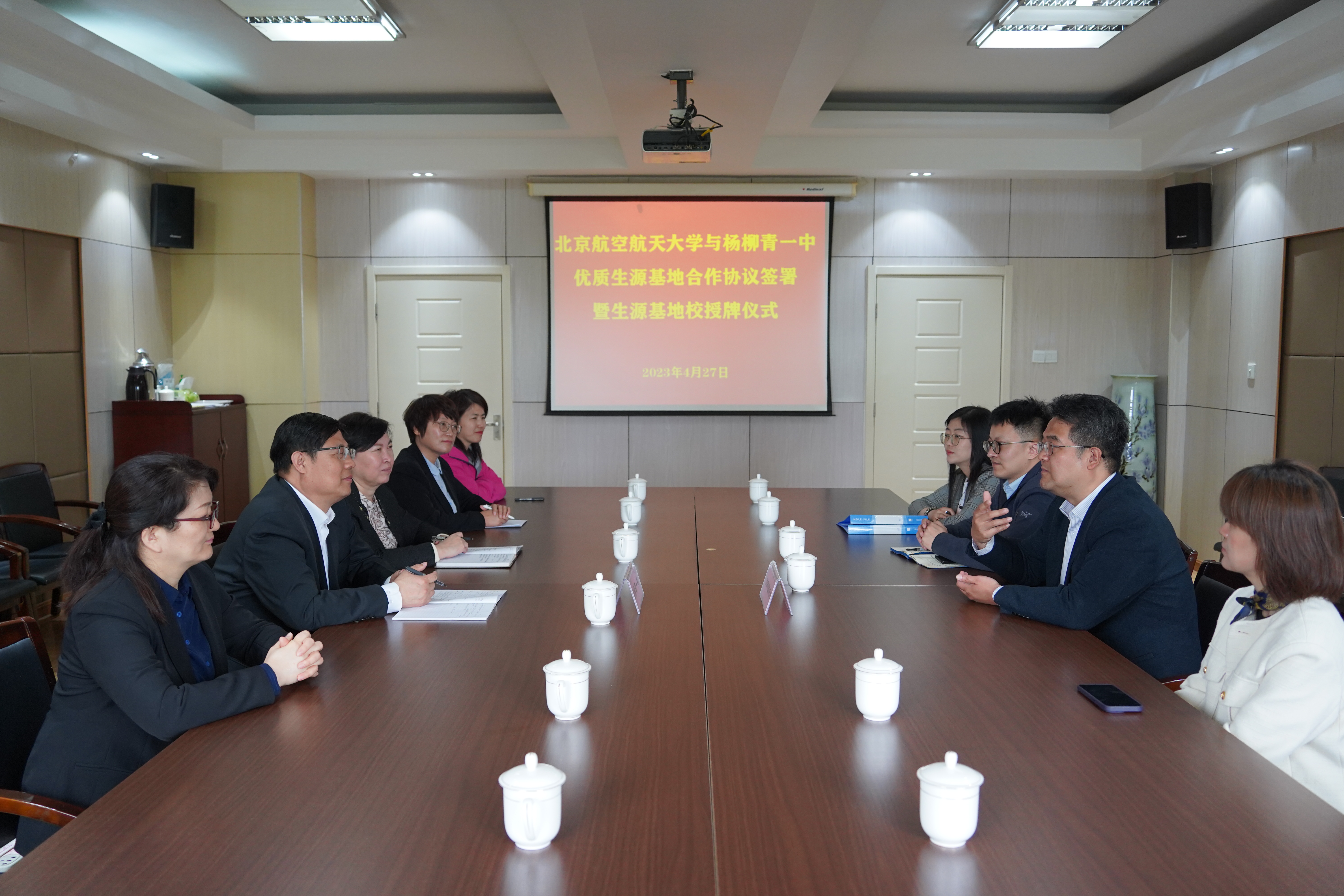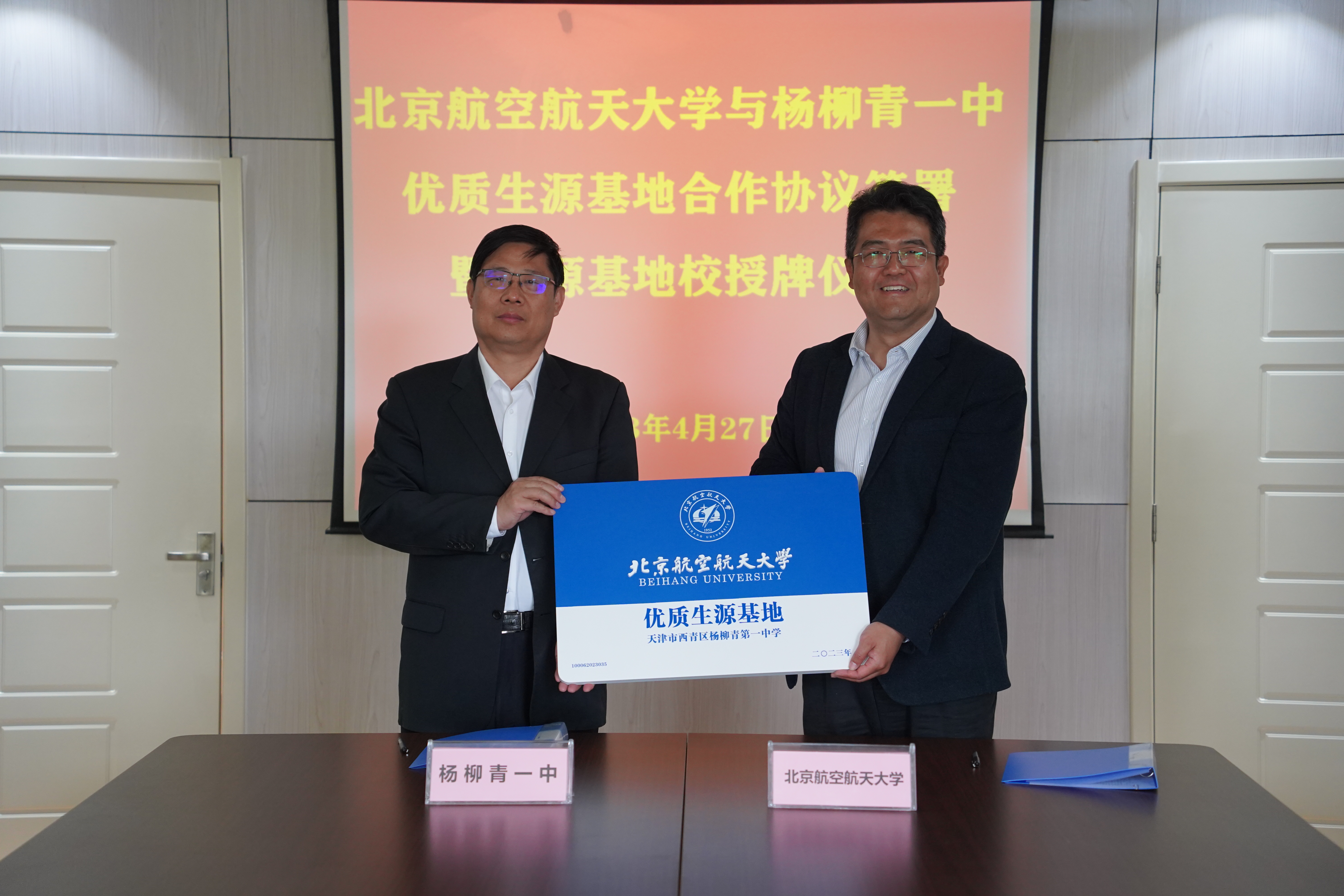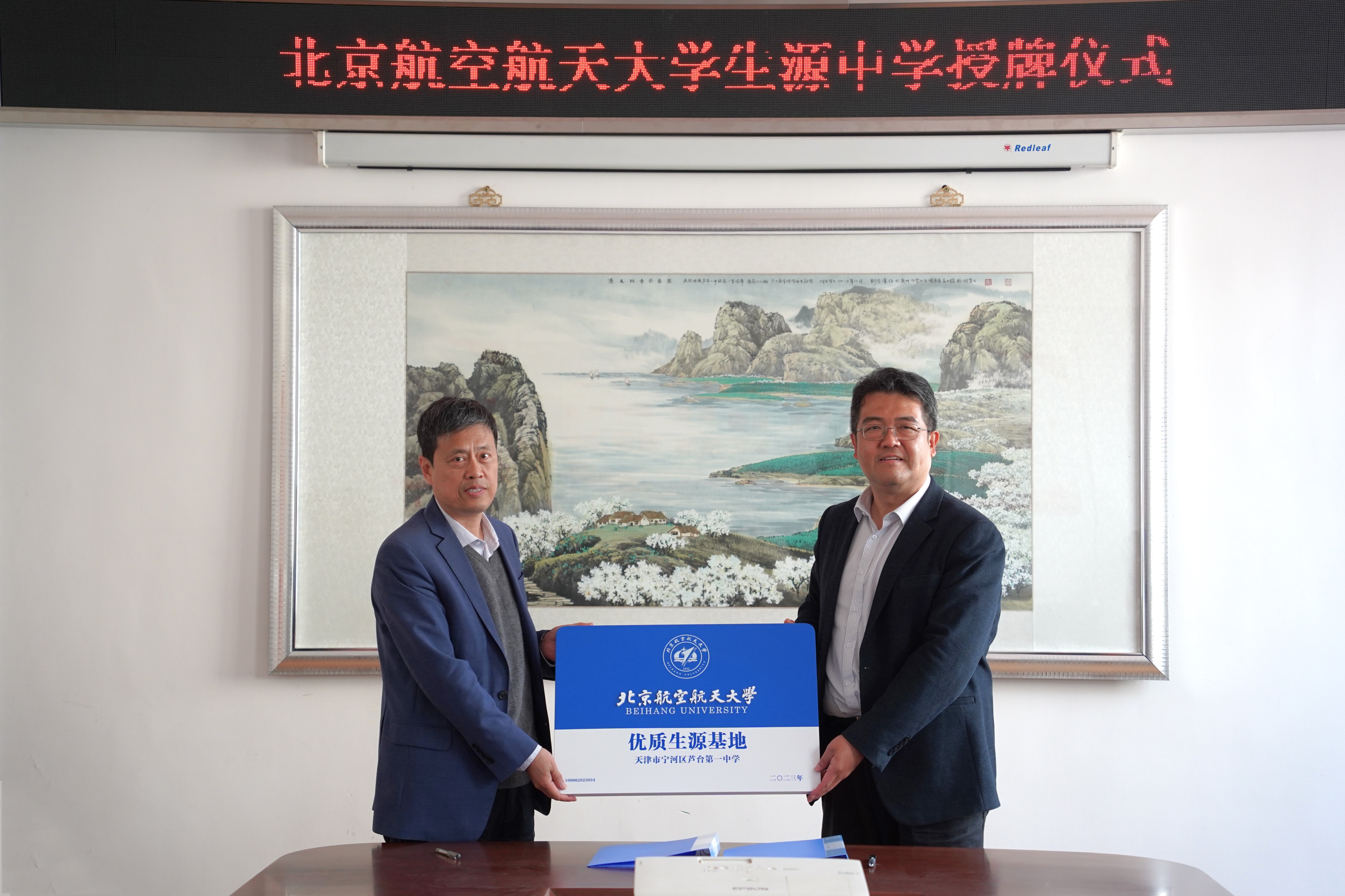 为进一步加强高校与中学的合作交流,促进教育资源的共享和优化,提高北航生源质量,4月27日,在北航天津招生组组长,beats365亚洲体育投注党委书记徐亚军的带领下,招生组一行人前往天津市西青区杨柳青第一中学(以下简称“杨柳青一中”)、天津市宁河区芦台第一中学(以下简称“芦台一中”)开展招生宣讲活动,并进行了“优质生源基地”合作协议签署及授牌仪式。