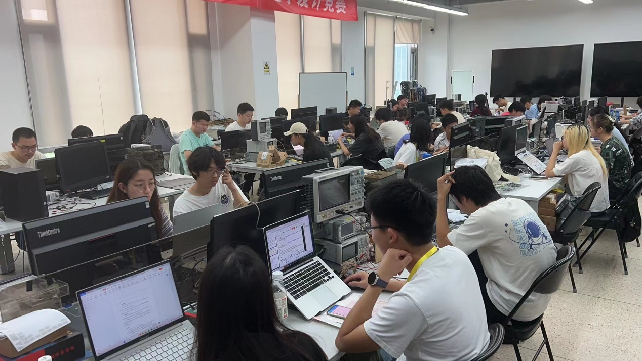 自2023年春季学期初始,学院逐步开展全国电赛的动员与培训工作,组织线上、线下培训及真题训练与讲解工作10余次。7月3日起,学院组织学生进行暑期集训,针对全国电赛所需的知识、技能进行综合训练,为150余名学生提供了技术、场地、材料等多方面的支持,为参赛学生在全国电赛中取得优异成绩打下坚实基础。