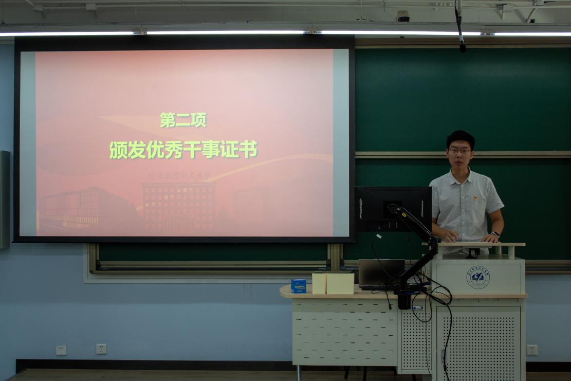 在表彰环节,学院专职辅导员田旺宣读了beats365亚洲体育投注2022~2023年度团委优秀干部名单,并为优秀干事代表颁发了证书。他们在过去一年中,积极参与和组织各类分团委活动,为服务广大团员青年做出了突出贡献。