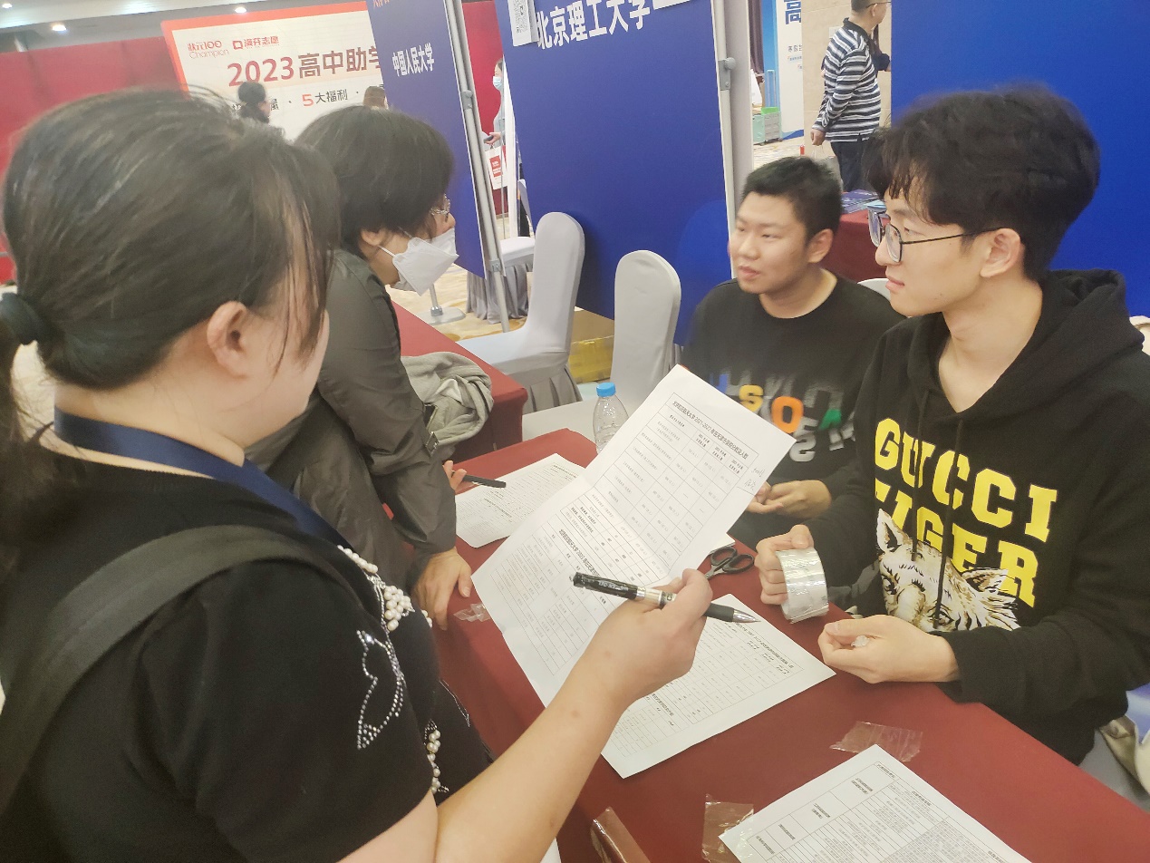 10月28日,北航天津招生组赴天津金皇大酒店参加高考宣讲活动。招生组成员刘丽文、闫奕达以及2023级天津籍本科生梁祺面对面为考生和家长详细解答关于北航在津招生情况的各种问题,重点介绍了北航往年的招生政策以及录取分数线情况,吸引了众多考生和家长关注北航以及招生组的动态,现场气氛热烈。