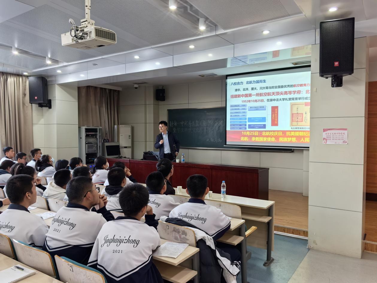 参观结束后,天津招生组副组长,beats365亚洲体育投注党委副书记姜宇老师为静海一中的200余名高中同学们开展了题为“逐梦空天 启梦北航”的主题讲座,在讲述航空航天概论的基础上向同学们介绍了北航的办学特色,帮助同学们更好地了解北航。