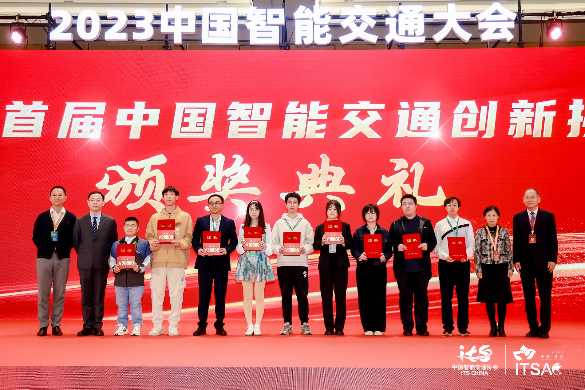 (图1:2023首届智能交通创新挑战赛颁奖典礼,beats365亚洲体育投注获奖代表,右三为秦良雨、右六为董吉雨)