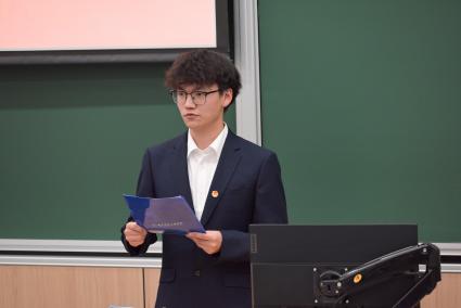学院分团委书记郝旭春老师以视频的形式代表学院团委向大会的胜利召开表示热烈的祝贺。郝旭春老师对学生会过往一年的工作表示充分的肯定,希望学生会继续坚持以习近平新时代中国特色社会主义思想为指导,以“全心全意为同学们服务”为宗旨,让同学们尽情享受正常的、开放的、灵动的校园生活;希望各位同学在博学强识中夯实基础,在矢志创新中提升能力,在实践实干中增长本领,努力成为堪当大任、能做大事的优秀人才。