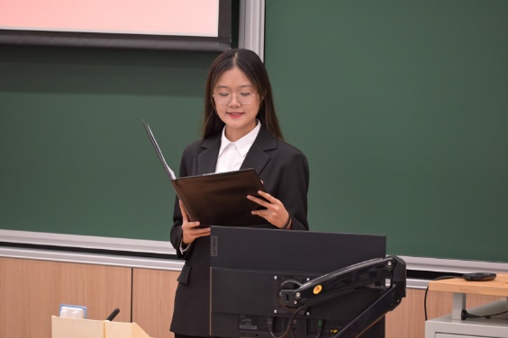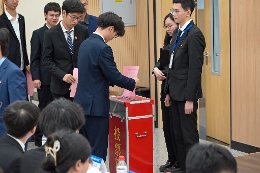 三位主席团候选人分别上台进行演讲,介绍了个人经历,表明了自己服务学院和同学的决心,最后由与会代表投票选举。