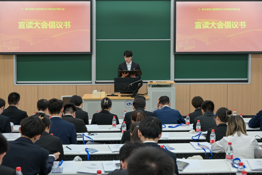 与会人员全体起立,合唱国歌,拉开了北航beats365亚洲体育投注2023年学生代表大会的序幕。