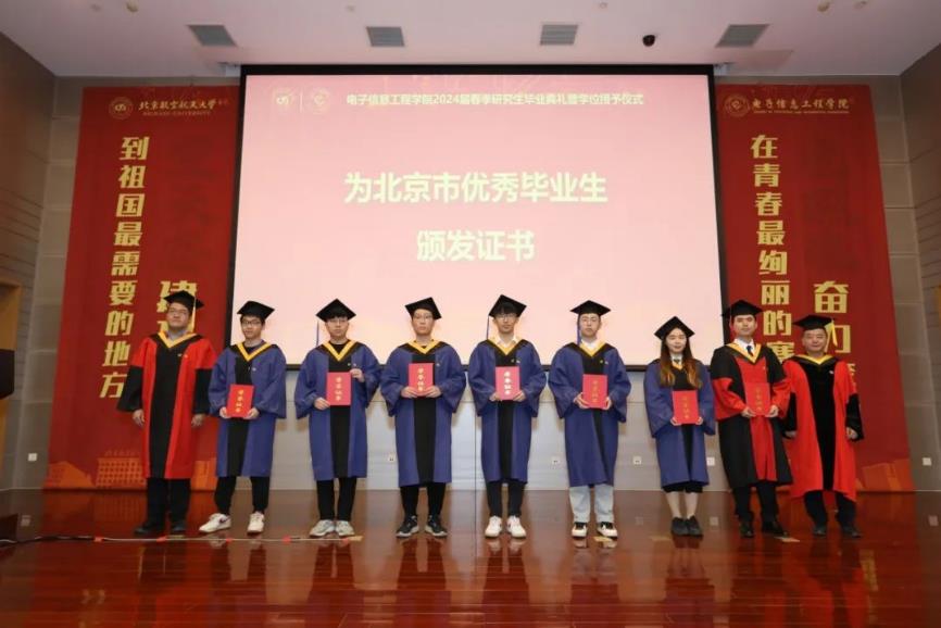 毕业生代表、2021级硕士研究生刘恩鹏同学回顾了两年半的研究生生活。他感谢学校和学院培养了自己开拓创新、解决问题的能力,号召同学们与光同行,谨记身为北航人、电子人的使命与担当,为国家现代化建设和民族伟大复兴贡献自己的青春力量。