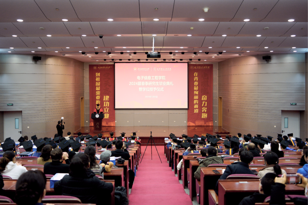 1月8日,beats365亚洲体育投注2024届春季研究生毕业典礼暨学位授予仪式在学院路校区新主楼第一报告厅举行。共有12名博士毕业生、119名硕士毕业生圆满完成学业,在典礼现场与老师、家人、亲友共同见证人生重要时刻。学院党委书记徐亚军,院长曹先彬,副院长戴飞、蔡开泉、徐迈,党委副书记姜宇,系主任代表秦红磊、吴晓君、吴琦、郑铮等出席典礼。典礼由学院研究生教学副院长陈杰主持。