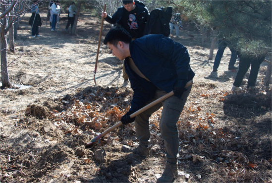 "饮水思源,取之社会,用之社会"带着这份感恩与社会赋予的使命,我跟随学院党支部参加义务植树抚育活动,为北京市大兴区六合庄林场添上一抹新绿色,新春气。