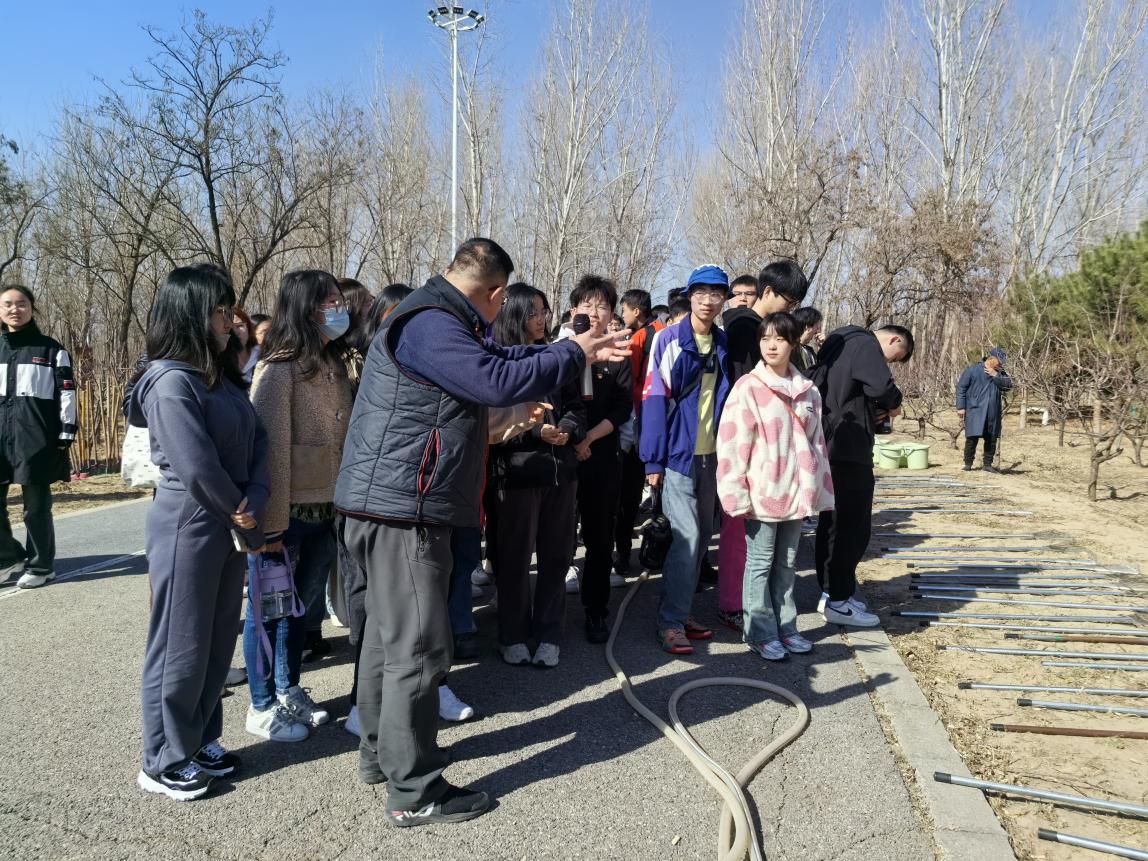 活动伊始,基地的工作人员为同学们详细讲解了除草除杂、挖坑堆垒、取水灌溉、深埋松针等等细节,为参与的同学介绍了植树抚育的具体工作。同学们认真聆听,紧牢记相关技巧,为接下来的植树劳动做好了充分准备。