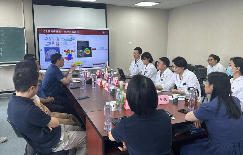 北航刘建胜教授做了题为“快速高分辨光纤传感技术在医学诊疗方面的应用”的报告,介绍了光电信息系科研团体开发的具有自主知识产权的快速高分辨光纤柔性传感解调技术,该技术可以实现对介入器械在体内复杂介入路径上的全长度毫米级空间分辨位置定位、微应变应力测量的实时快速测量和精准导航,可应用于支气管器械导航,心血管消融导管导航, 药物输送导管导航,骨科手术位置跟踪,神经外科穿刺针跟踪,神经植入位置跟踪等方面。江东主任及王欣护士长对此技术非常感兴趣,和刘教授及郑铮教授一起探讨了将这种光纤传感技术应用于运动医学手术及康复训练时可能存在的问题和解决方案。