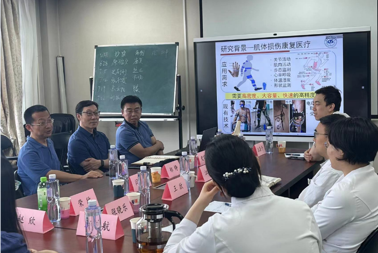 三院运动医学科的江东副主任主持活动,介绍了科室及出席活动的人员情况。光电信息系教师支部书记闫娟娟介绍了参会老师的研究方向,并表示非常希望双方多交流合作,把老师们的研究成果应用到运动医学实践中。
