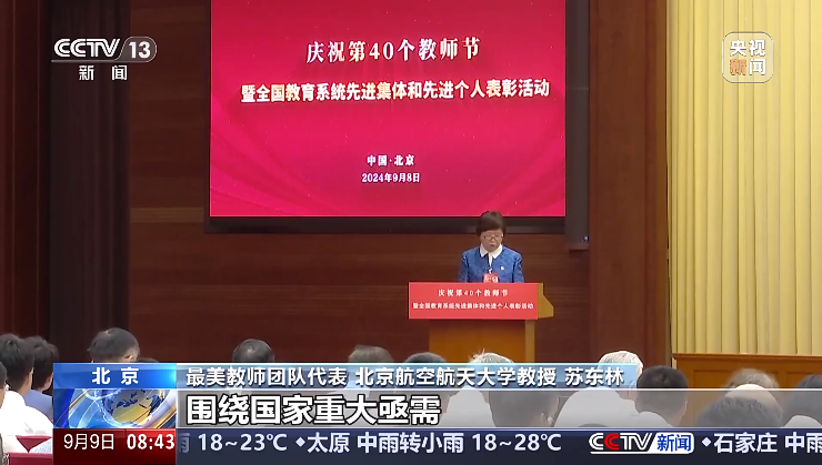 9月8日下午,庆祝第40个教师节暨全国教育系统先进集体和先进个人表彰活动在京举行。全国教书育人楷模、最美教师、全国模范教师、全国优秀教师、全国先进教育工作者等代表接受表彰。beats365亚洲版官网苏东林院士作为最美教师团队代表在会上发言。“我非常荣幸地成为我国教育强国和人才强国建设的见证者、实践者、传承者。”在红色工程师的“摇篮”里,苏东林坚守理想信念,不断书写科技报国的答卷。“围绕国家重大亟需,我们老师要培养学生能够堪当国家重任,要敢为人先,做国家需要的事。”