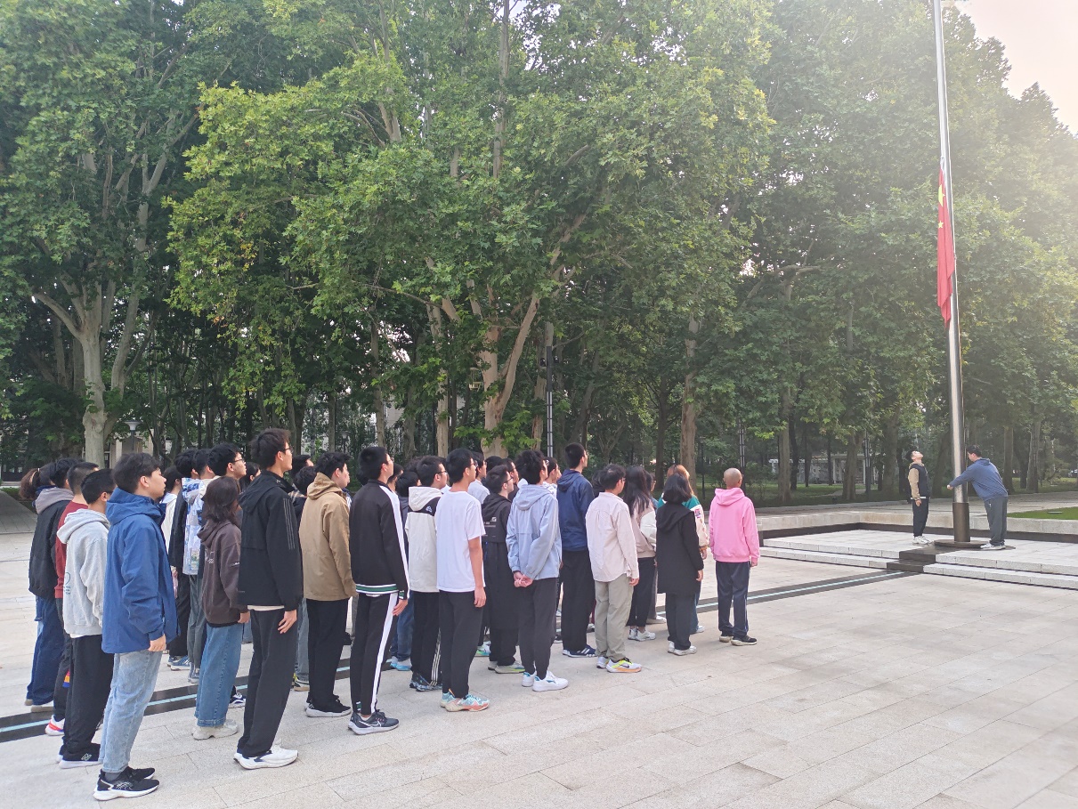 9月27日清晨,曙光初照,230222团支部与230291团支部的全体成员在庄严的国旗下集合,共同举行升旗仪式。随着雄壮的国歌响起,五星红旗在晨曦中冉冉升起,映照着每一位同学的脸庞。随后,230222团支部代表王梓屹同学发表以“高举青春之火 共赴伟大复兴”为题的演讲,深情回顾了祖国75年的辉煌历程,并引用张伯苓校长的“爱国三问”,激励同学们将爱国情感融入日常学习与生活,勇于担当,敢于创新,为国家的繁荣富强贡献青春力量。最后,他呼吁大家携手共进,以更加坚定的步伐,迈向中华民族伟大复兴的辉煌未来,让青春在不懈奋斗中绽放最耀眼的光芒!