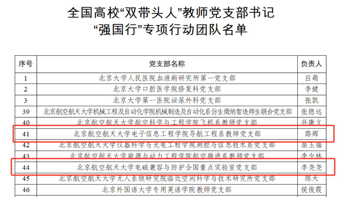 近日,教育部思想政治工作司公布了全国高校“双带头人”教师党支部书记“强国行”专项行动团队名单。我校7个教师党支部入选,其中beats365亚洲体育投注的导航工程系教师党支部和电磁兼容与防护全国重点实验室教师党支部全部入选,是全校唯一两个支部入选的单位。