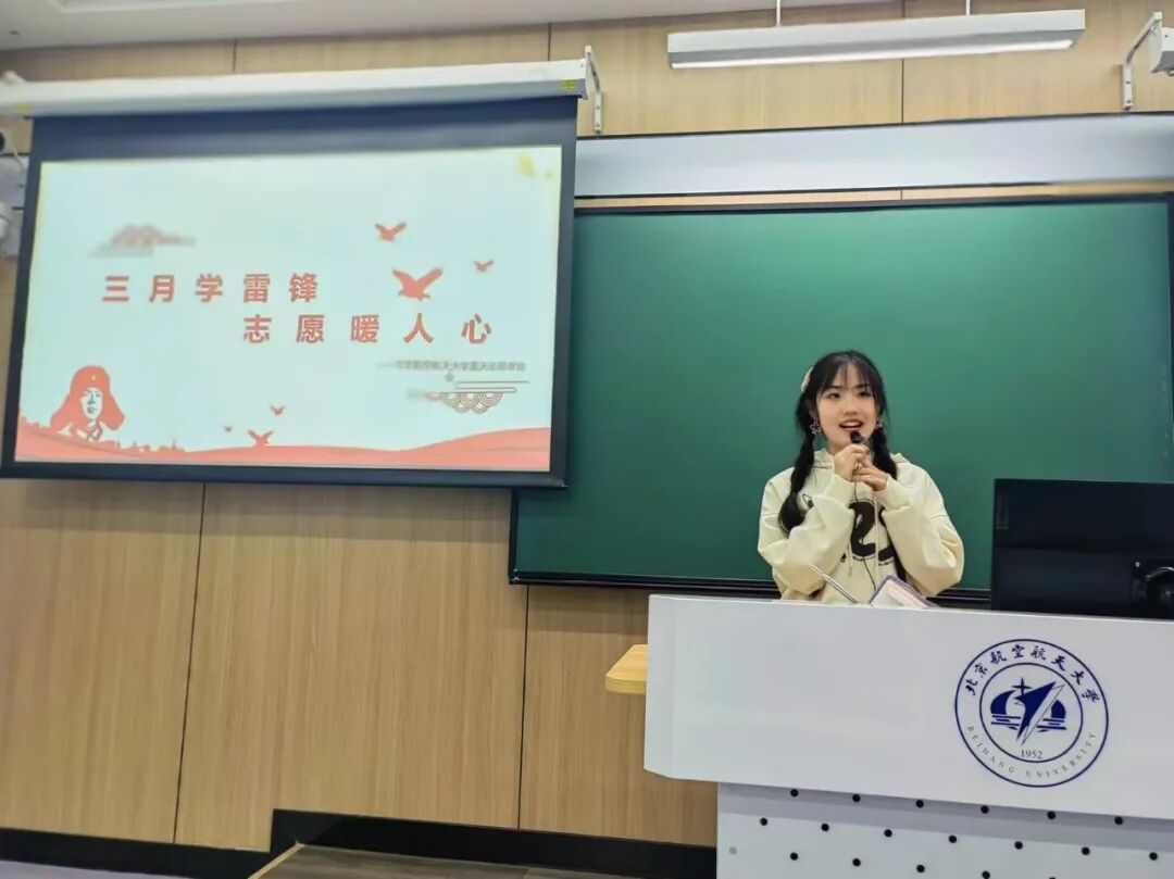 在 “三月学雷锋・志愿暖人心” 劳育博雅讲座中,丁锦晗同学担任主持人,精心设计讲座流程,结合雷锋同志的先进事迹与当代志愿服务案例,助力雷锋精神在新时代校园中的深度传播与广泛弘扬。