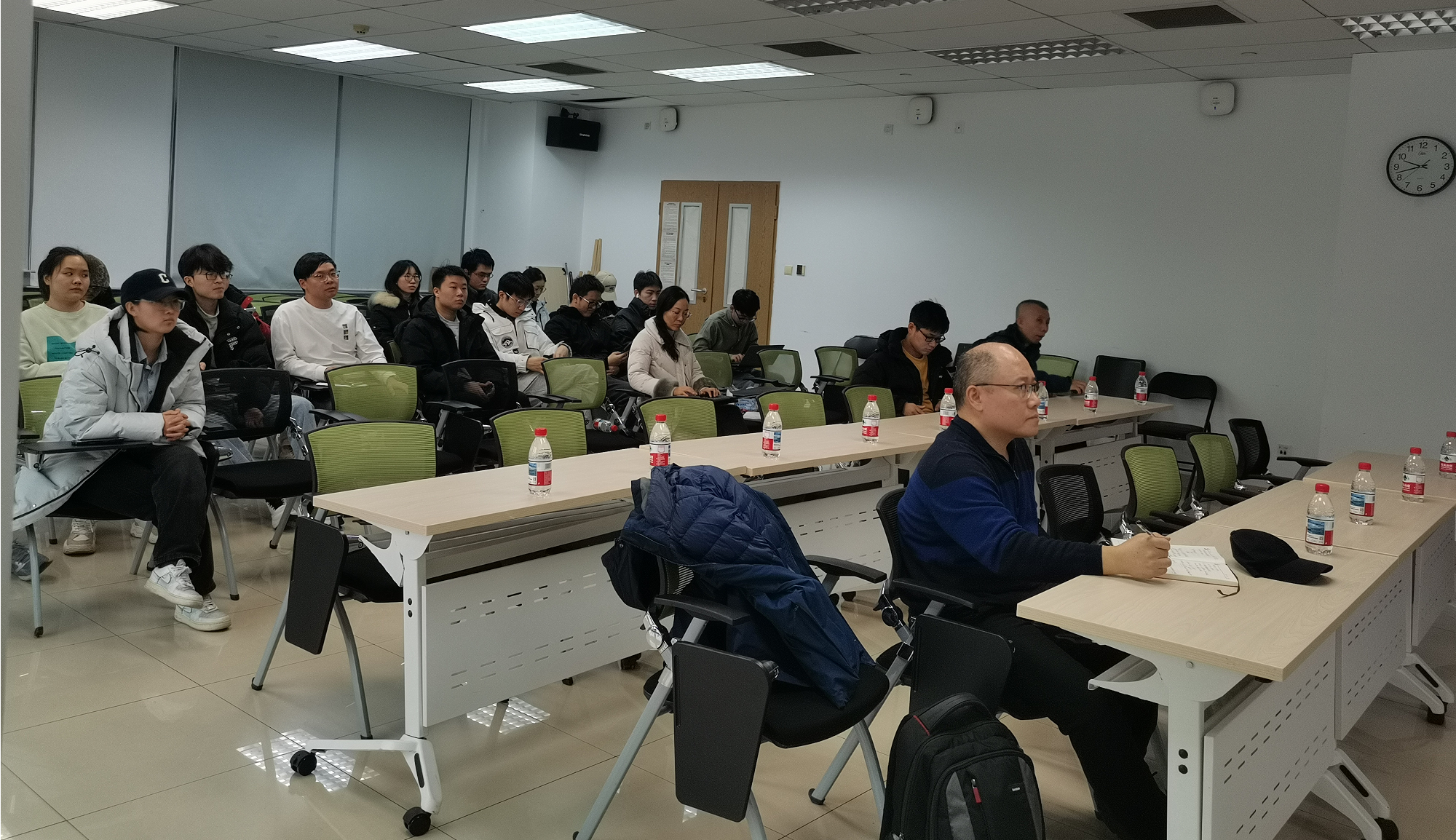 报告后的互动环节,师生围绕“科技创新与经济转化”展开热烈讨论,提出科研成果转化困境:当前考核体系下,专利论文的“能否转化”让位于“能否毕业”。张超老师回应称,这一共性问题需通过深化创新体制改革破解,“高校作为创新主体,应构建从基础研究到产业应用的全链条机制,推动科研评价从‘数量导向’转向‘价值导向’”。他建议同学们主动对接数字人、绿色发展、健康中国等国家战略需求,在科研选题之初即融入产业发展导向。