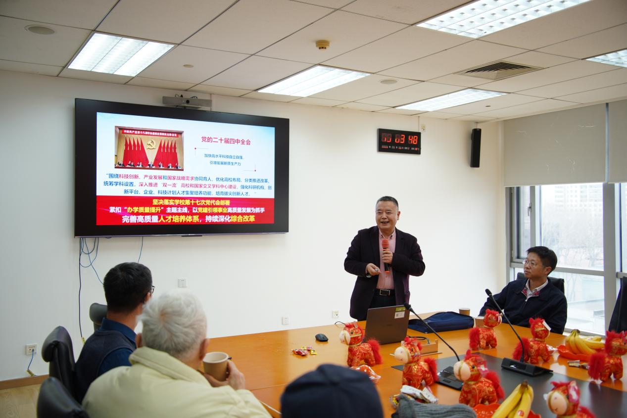 党委书记戴飞就学院年度思想政治工作及文化建设向老教师作了汇报。他强调,学院近年来取得的进步,离不开老教师们打下的坚实基础和持续的关心支持。为深入传承“空天志,电磁魂”精神,学院将组织开展院史宣讲、专题视频录制、《电磁魂》话剧编排等一系列活动,推动精神文脉在新时代焕发新光彩。