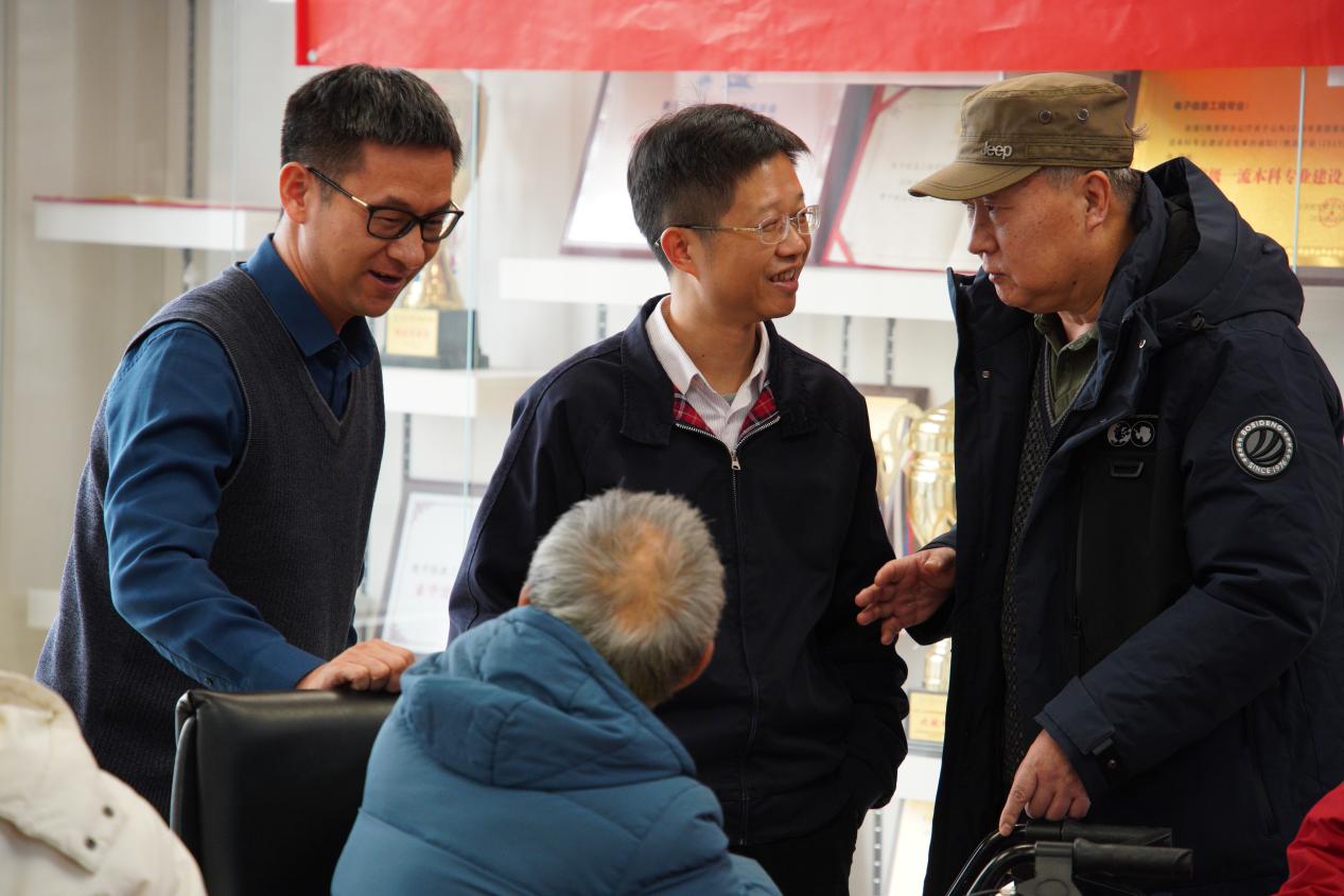 座谈交流环节,戴飞、曹先彬、路辉等领导班子成员,工会主席何锋,党政办主任付路,工会副主席史晓锋与老教师们亲切交谈,悉心询问他们的生活起居与身体状况,认真听取大家对学院发展的意见建议。老教师们对学院近年来取得的成绩深感欣慰,纷纷表示将持续关注学院建设,积极发挥余热,助力学院发展再上新台阶。