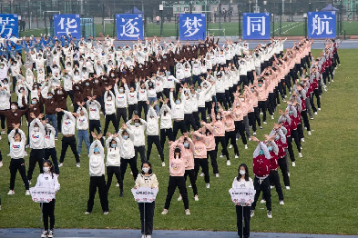 伴着第九套广播体操的口号音乐