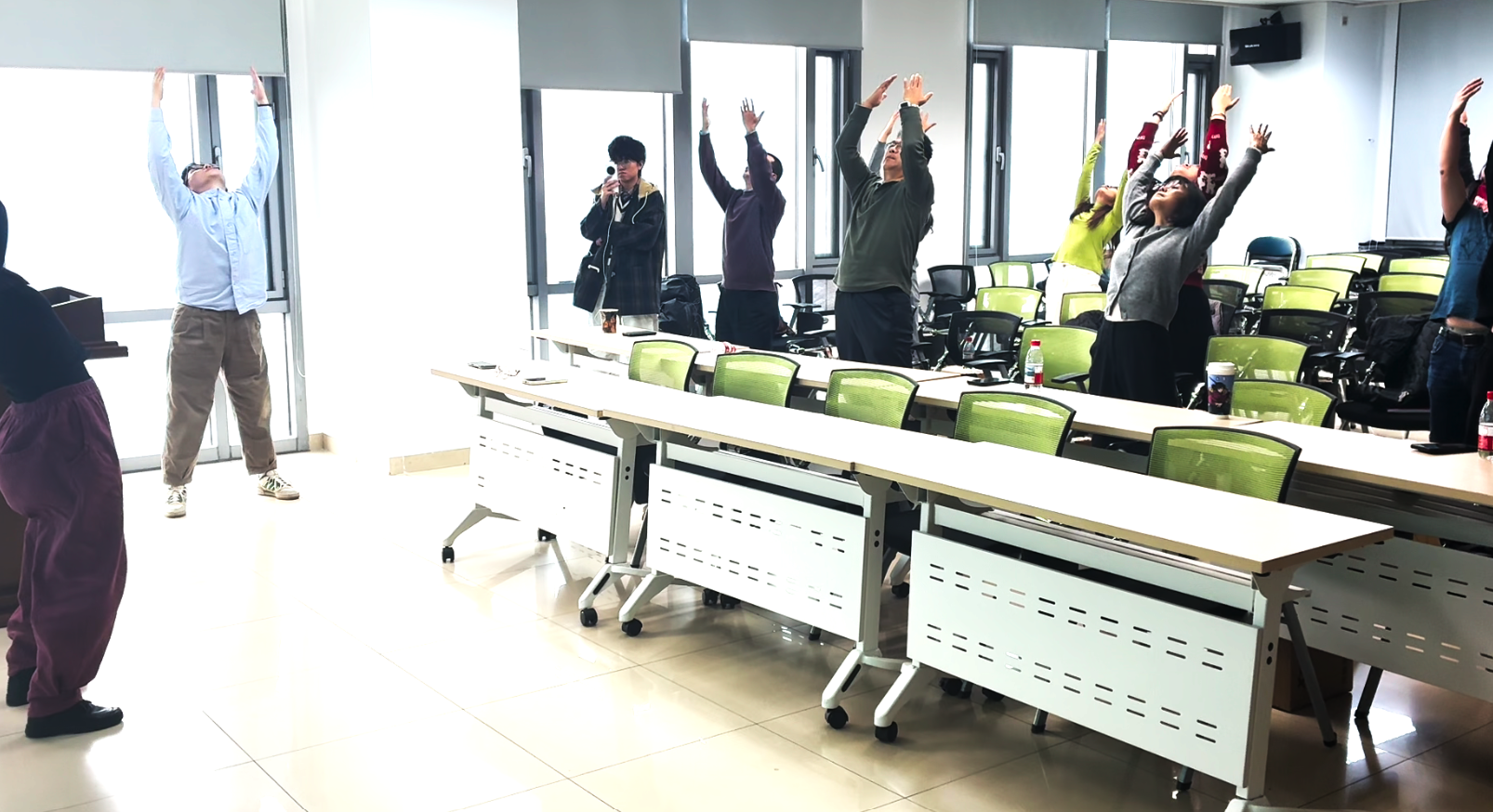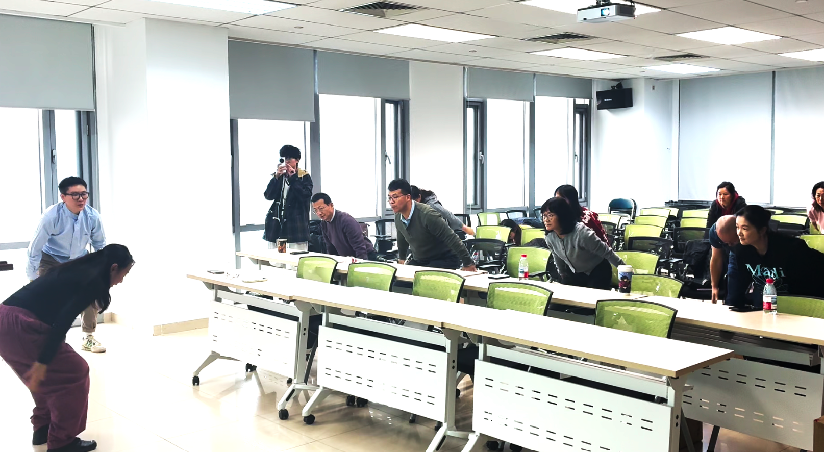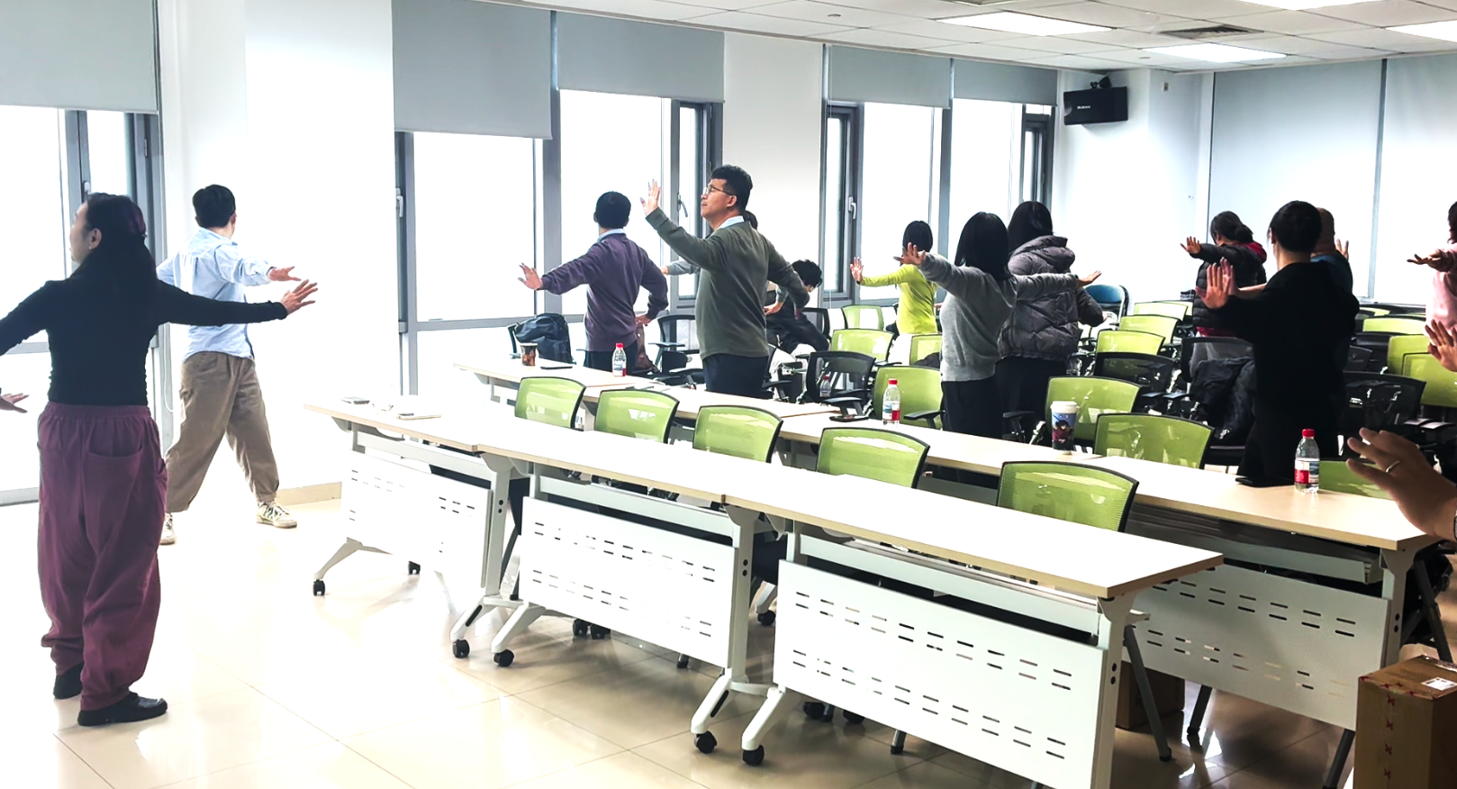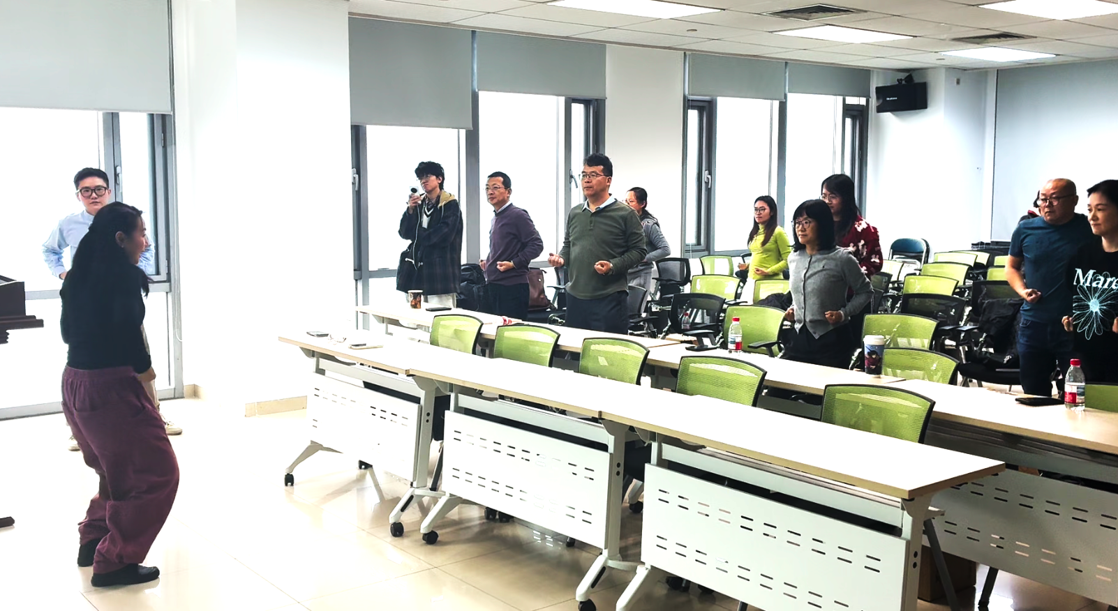 活动特邀国家体育总局运动营养课程特约讲师孙畅和王云鹏两位进行专题分享。孙畅讲师从医学角度出发,系统阐述了科学减重的原理与方法,详细讲解了饮食结构调整、营养素均衡搭配以及常见减重误区等内容,强调了“减重不等于减营养,减脂不等于减肌肉”的科学原则,为老师们提供了专业、安全的科学身材管理指导。随后,王云鹏讲师聚焦于日常健身,重点介绍了健腹轮的使用技巧、训练要点以及核心肌群锻炼的重要性,并在其带领下进入轻松愉悦的实践环节。大家跟随舒缓的音乐共同练习了传统养生功法“八段锦”,在动静结合中感受身心调和的舒畅,让大家亲身体验到了中国传统运动文化在调身、调息、调心方面的独特魅力,为整场活动画上了一个圆满的句号。