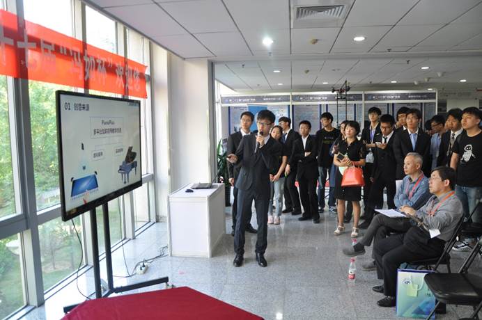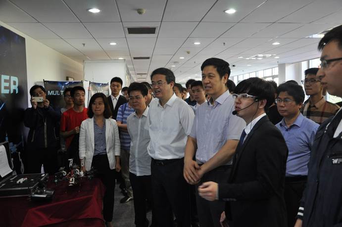 5月7日校党委书记张军院士和校长徐惠彬院士在学院副院长王俊、党委副书记郑磊的陪同下,参观了我院展区,对部分学生作品给予了肯定和表扬,并提出了宝贵意见。Multiflyer项目的作者潘佳义向张军书记汇报了项目实现的四旋翼无人机变矢量附着功能,得到了张军书记的鼓励和肯定。