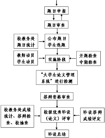 完成毕设动员:各学院召开教师、学生毕设动员会,学院毕设领导小组向教师、学生下达毕设任务,组织实施好毕设选题、开题动员工作。 |