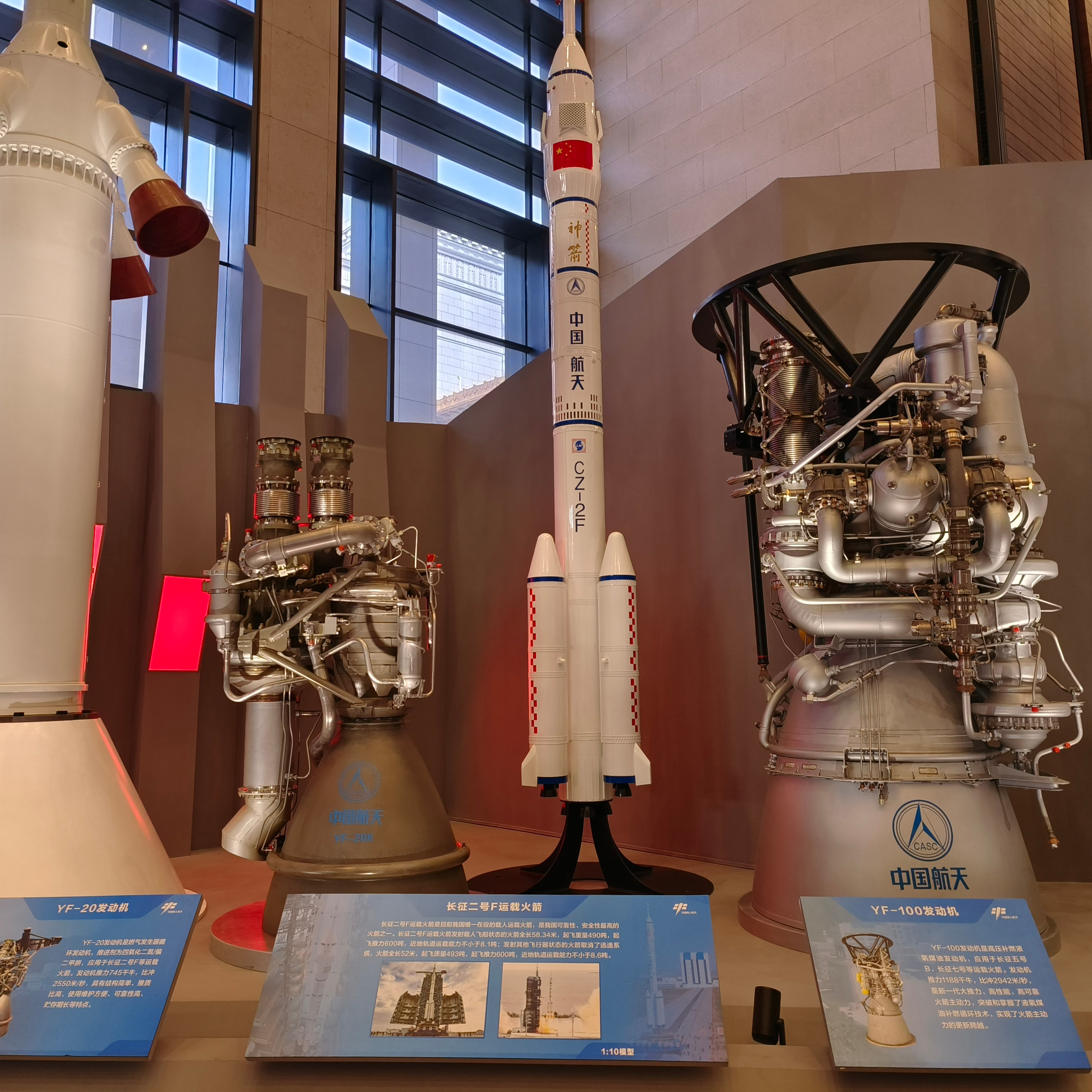 第二部分围绕展览展出的航天器模型展开。首先,志愿者为小学生们讲解了运载飞船的三款长征系列火箭——长征二号F、长征五号B和长征七号;随后讲解了返回舱、交会对接装置等航天器重要组成部分;此外,志愿者还对展出的循环再生装置、登月工程航天器模型、航天服等进行了讲解。