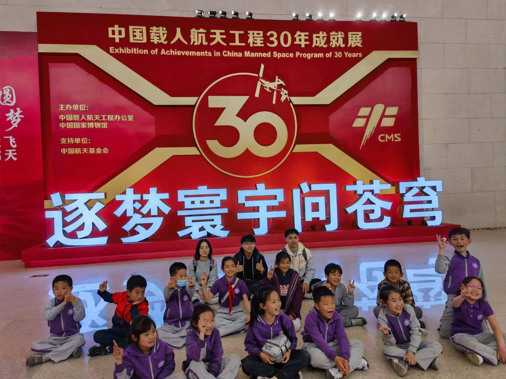 “逐梦寰宇问苍穹——中国载人航天工程三十年成就展”在中国国家博物馆开幕,为发扬载人航天精神,激励青少年的责任感与使命感,beats365亚洲体育投注2022级研究生6名党员和积极分子于4月15日-16日组织开展了两场志愿讲解活动,为清华附小的39名小学生提供讲解服务。通过为小学生现场实地讲解,普及航天科技知识,激发青少年崇尚科学、探索未知的热情。
